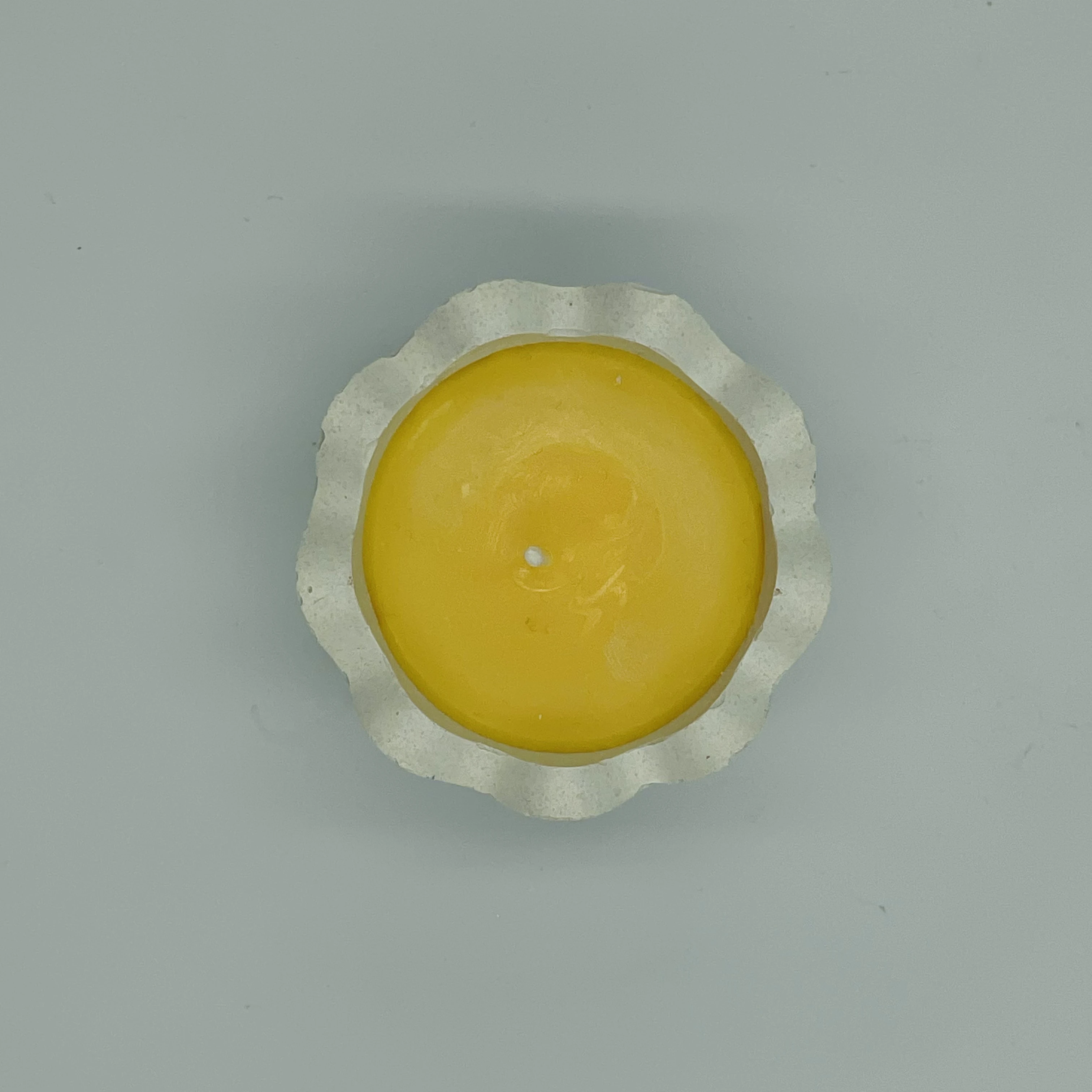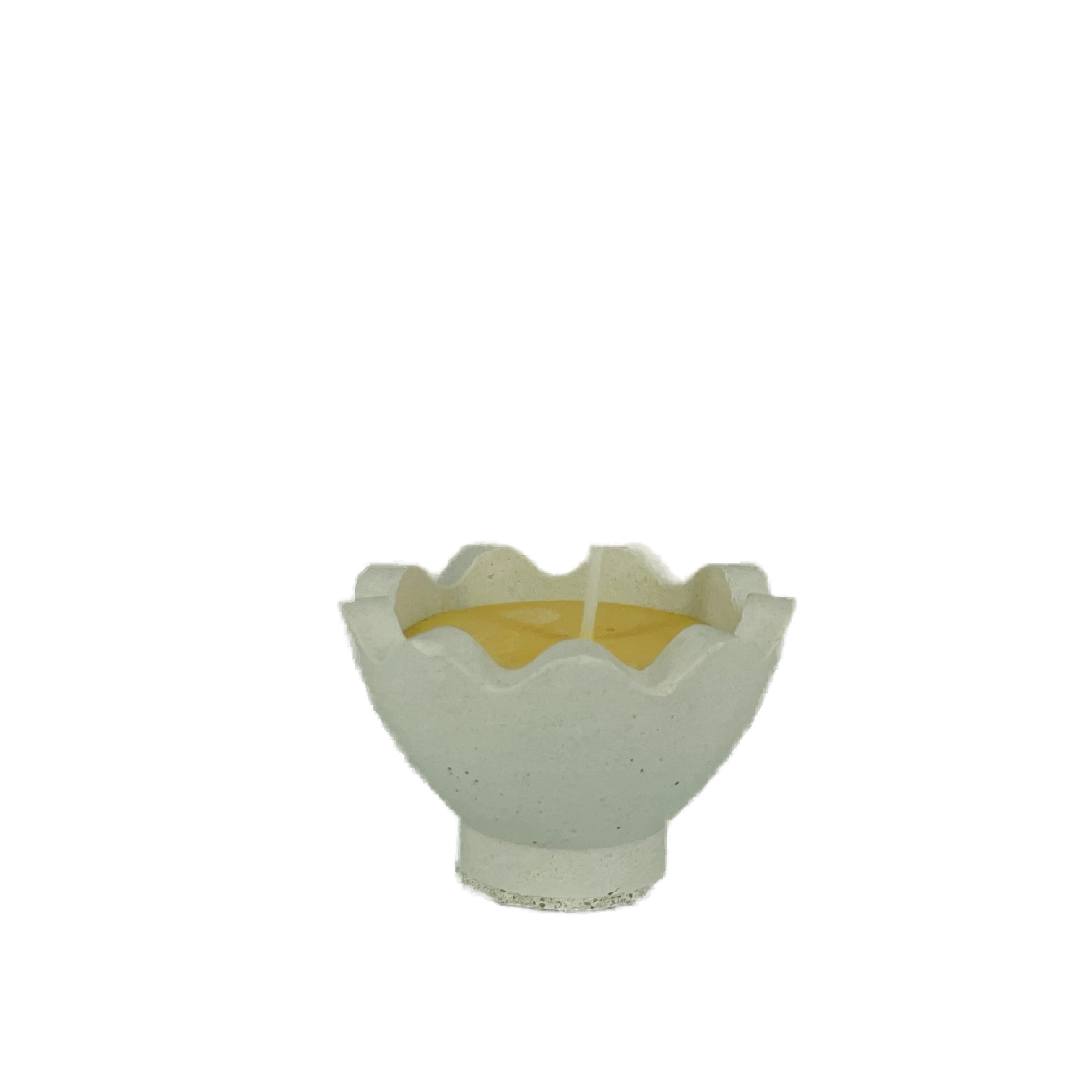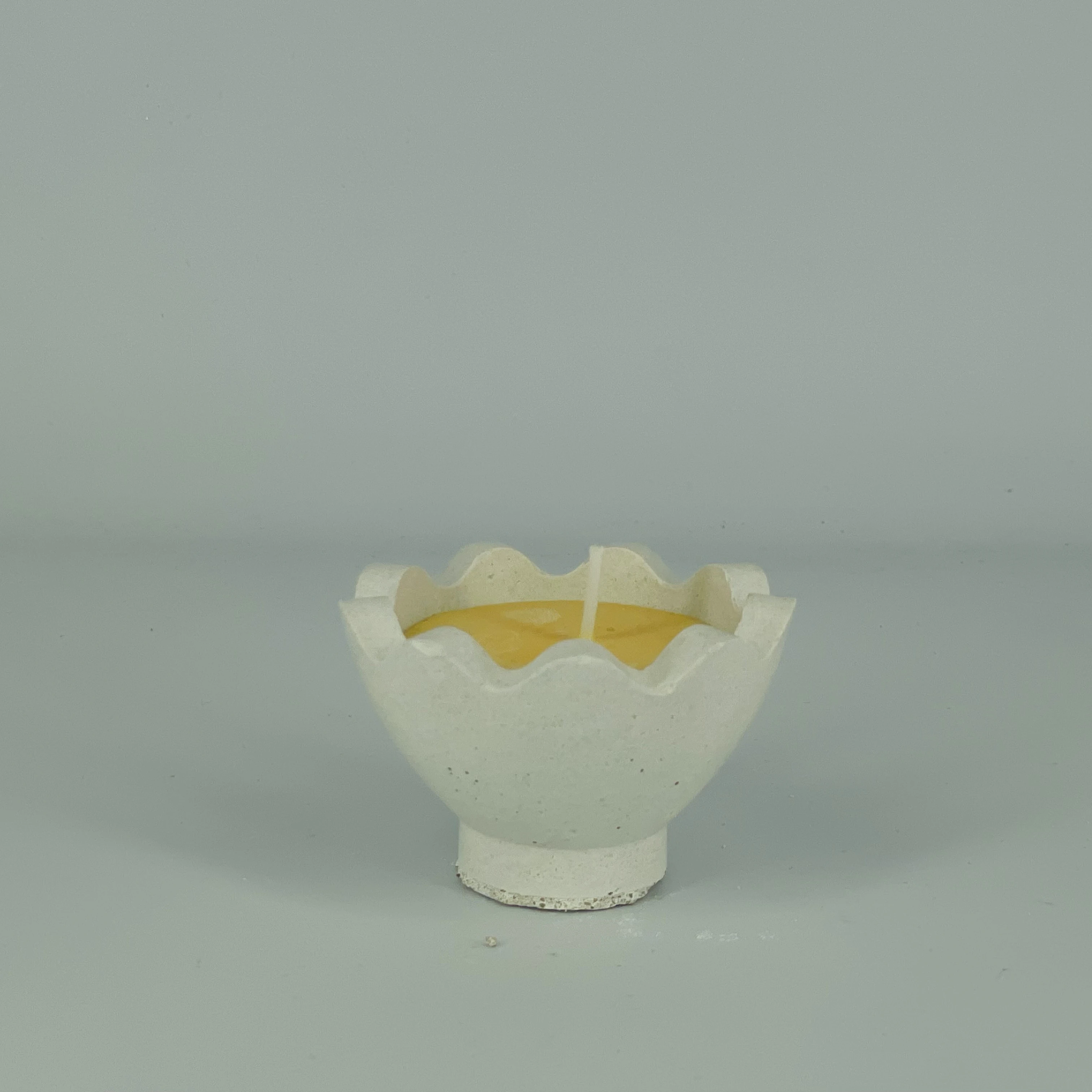 Mała świeca sojowa w kształcie rozbitego jajka w formie z betonu