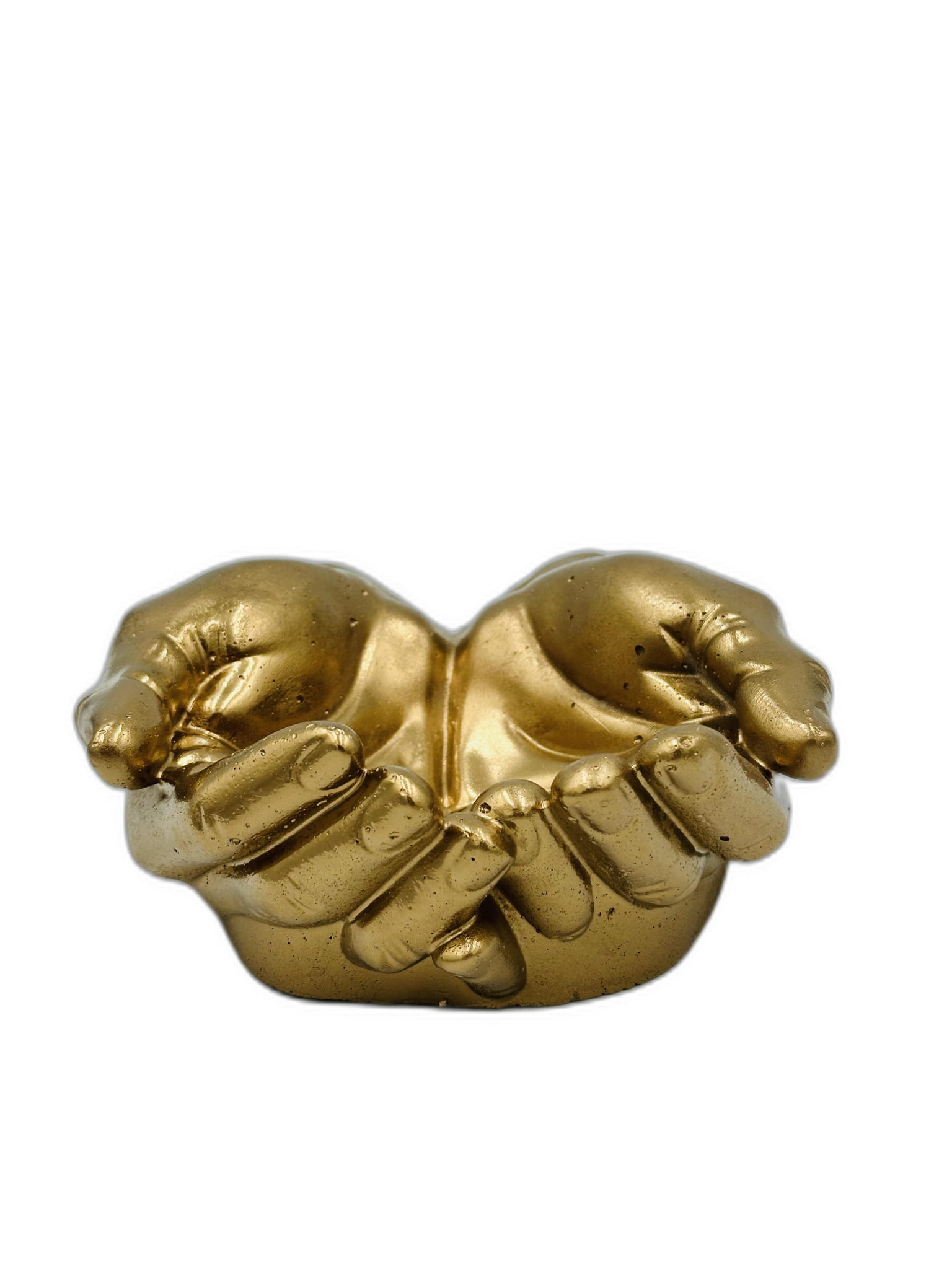 Rzeźba złotych dłoni to wyjątkowa dekoracja, która łączy w sobie surowość betonu architektonicznego z luksusowym, metalicznym wykończeniem. Delikatnie złożone dłonie tworzą formę miseczki – możesz wykorzystać je jako ozdobę samą w sobie lub jako podstawę pod świece, kryształy, biżuterię czy inne drobne elementy wystroju.