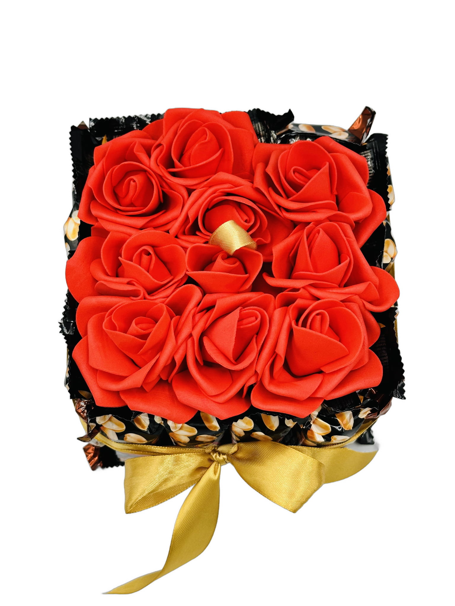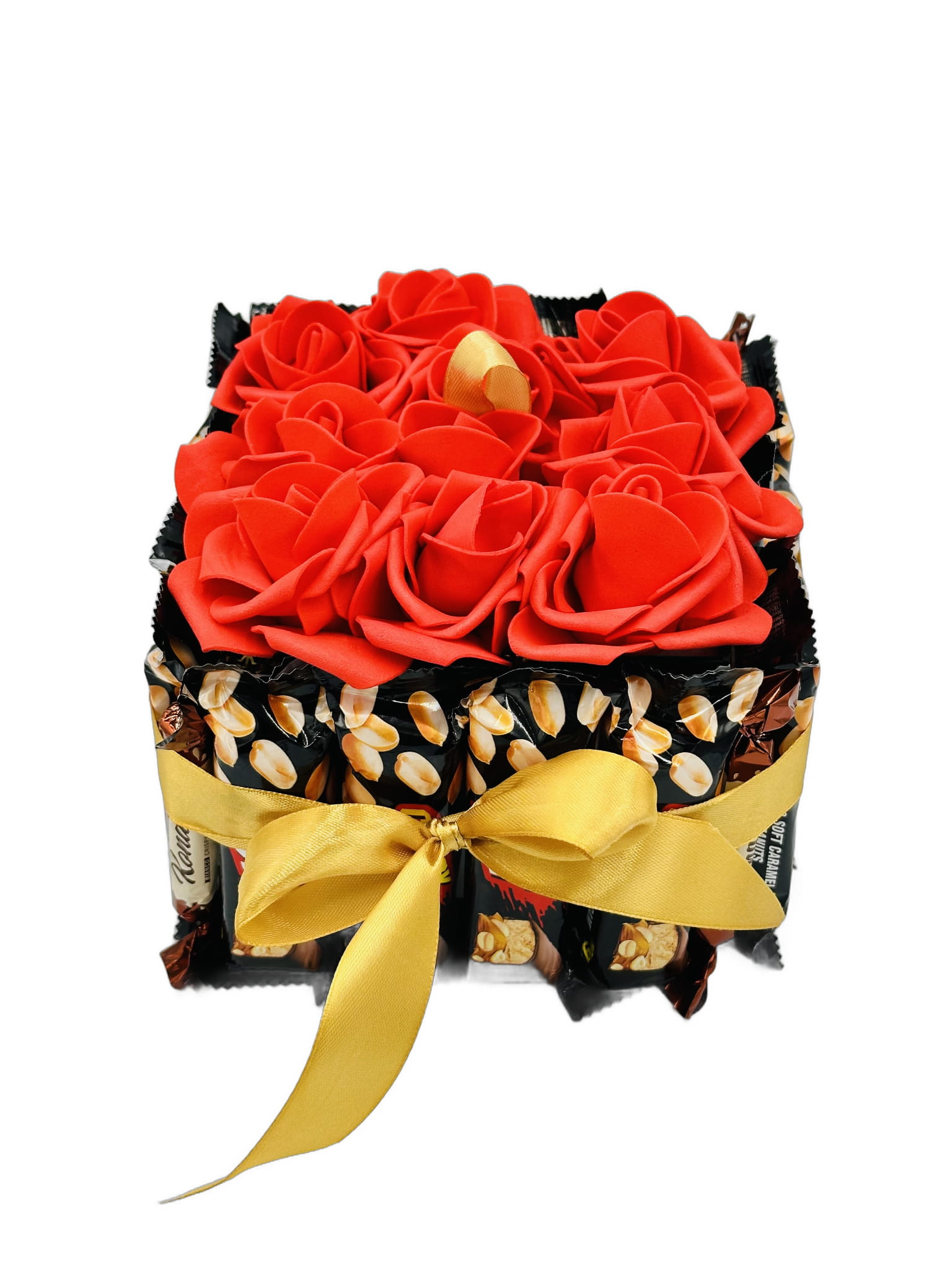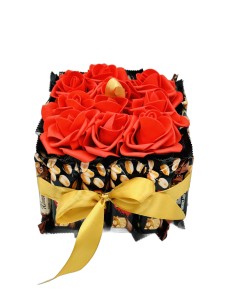Tort ze słodyczy Candy Nut Kosz prezentowy z różami na dzień Babci i Dziadka
