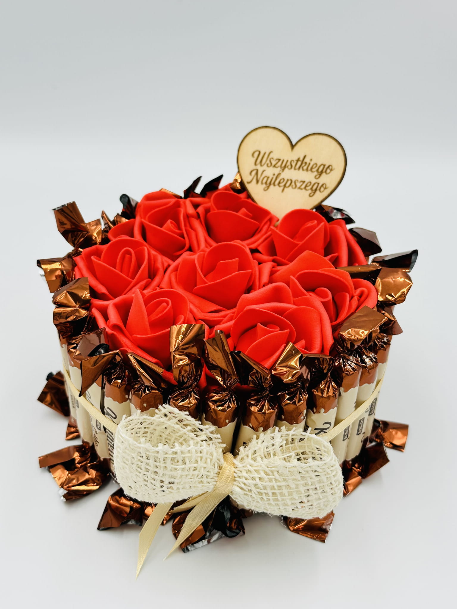 Tort ze słodyczy Konafetto różany na prezent urodziny rocznice 16 cm