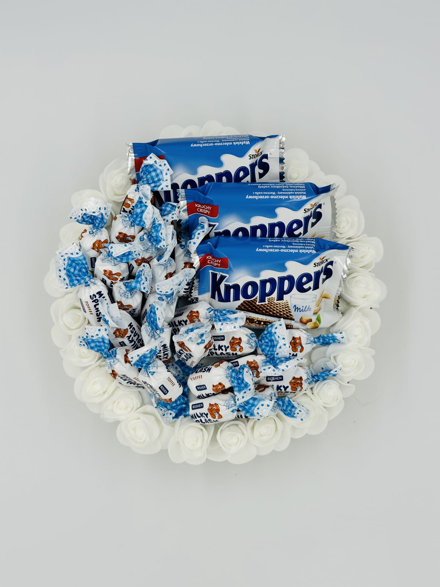 Tort ze słodyczy Milky Splash/Knoppers prezent na urodziny imieniny 20 cm