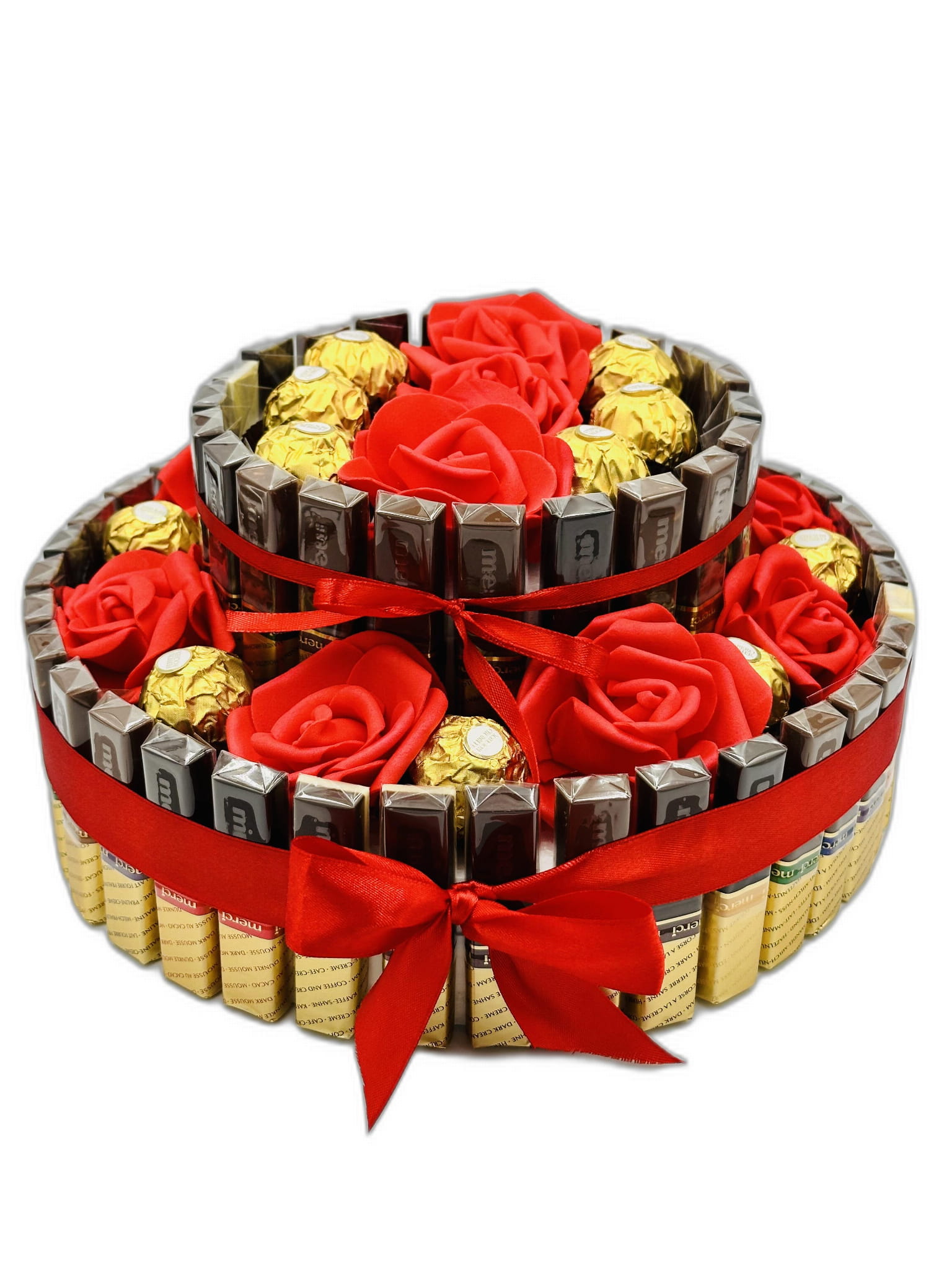 Tort ze słodyczy dwupoziomowy Merci Premium – elegancki prezent na każdą okazję