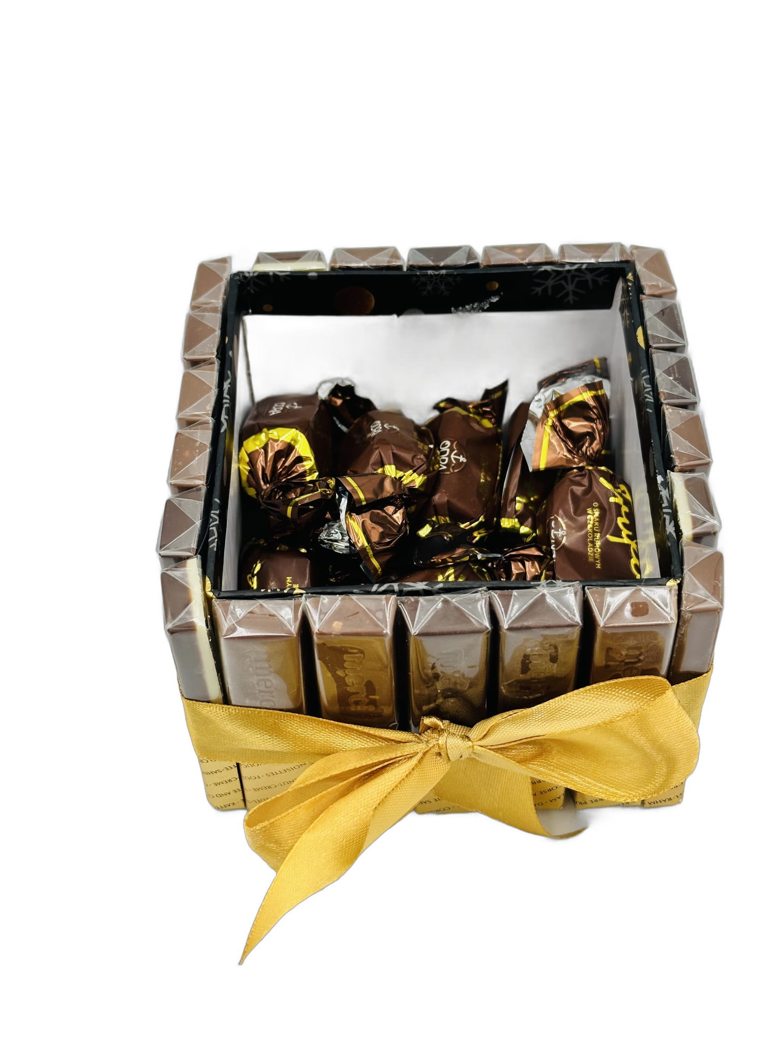 Tort otwierany w formie boxu wypełnionego słodyczami