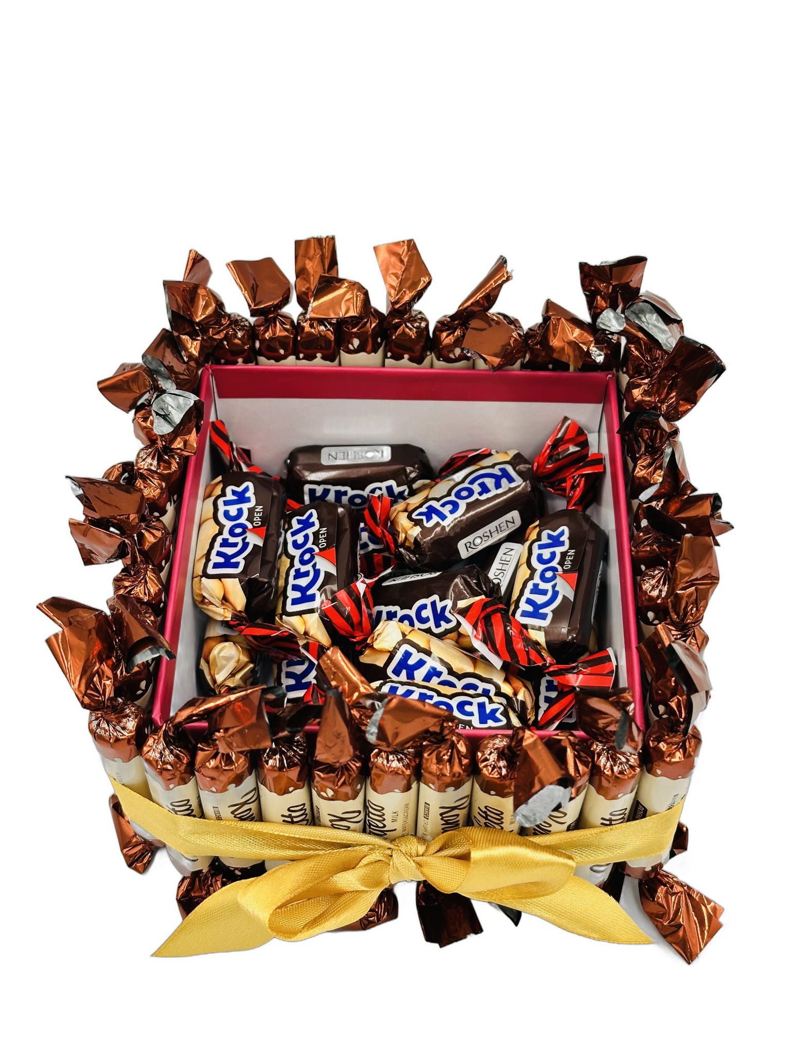 Tort otwierany w formie boxu wypełnionego słodyczami