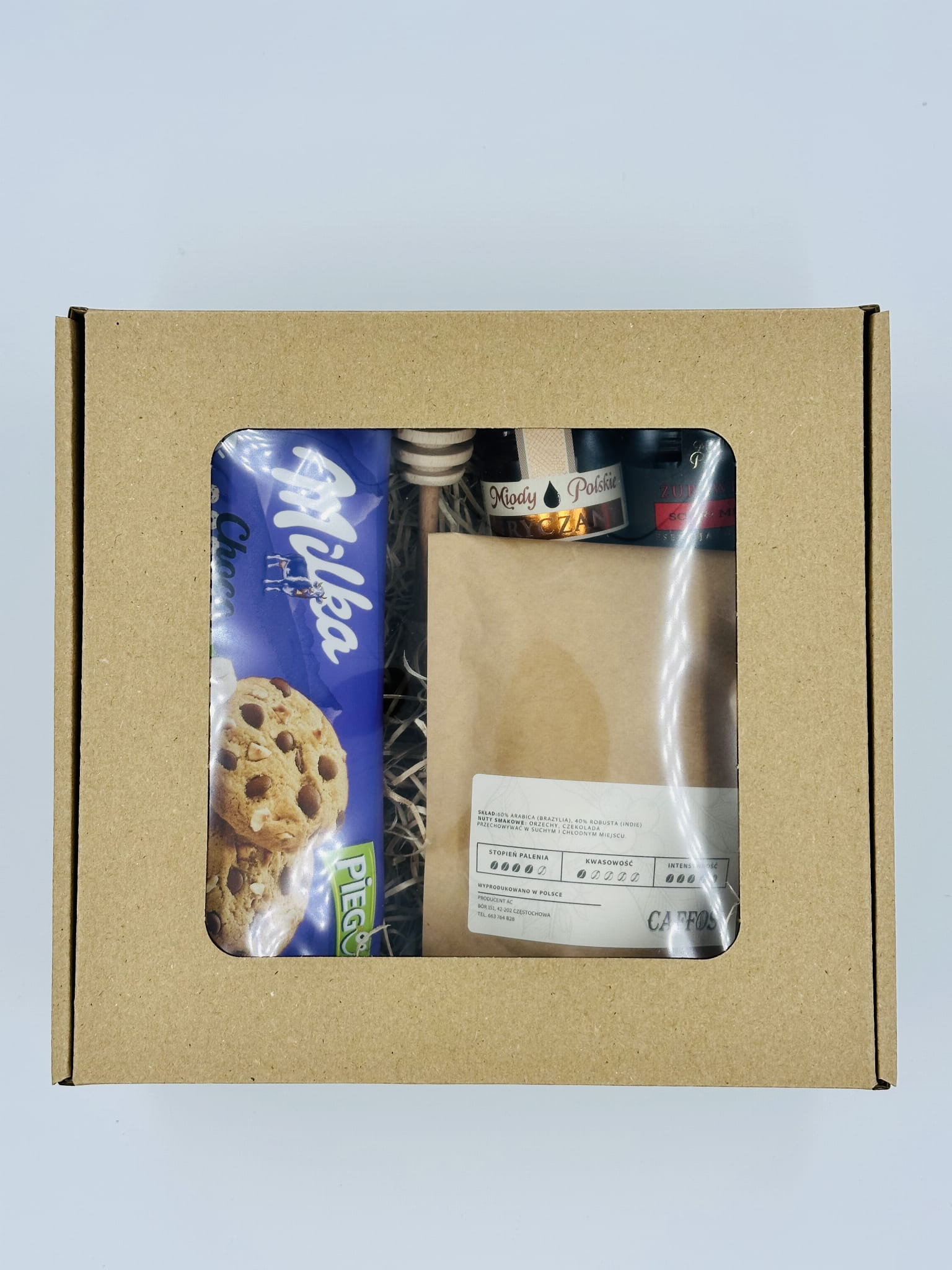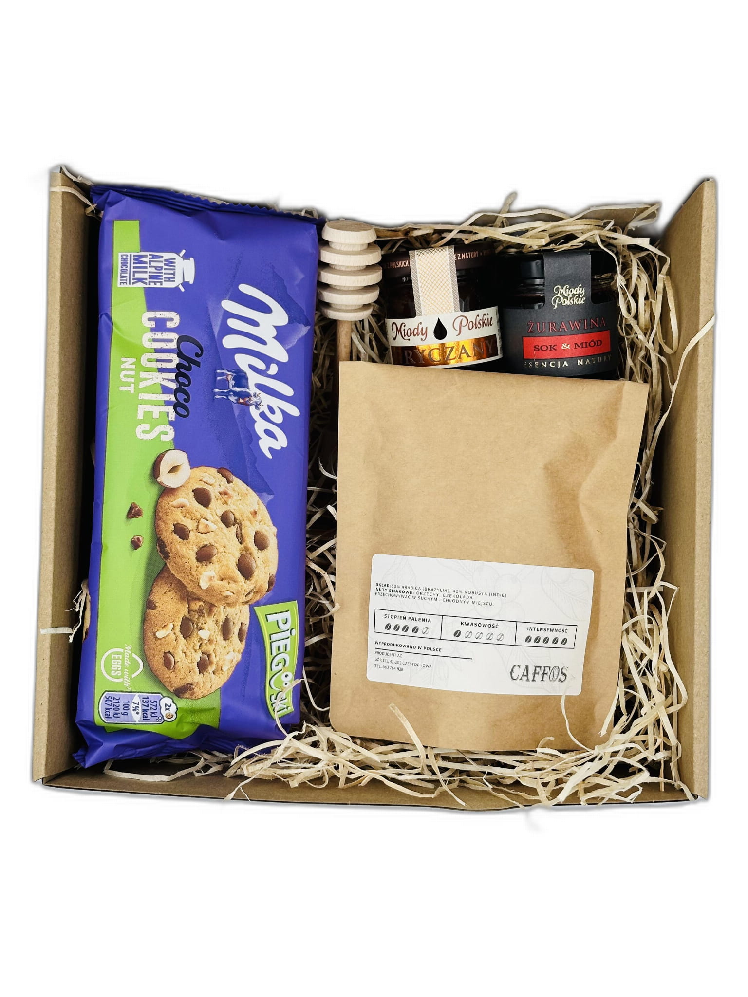 Zestaw prezentowy miód naturalny kawa świeżo palona ciastka prezent na urodziny imieniny
