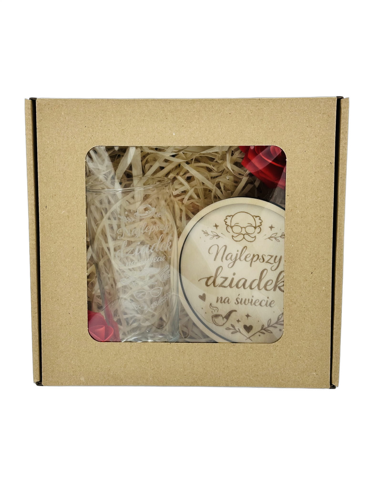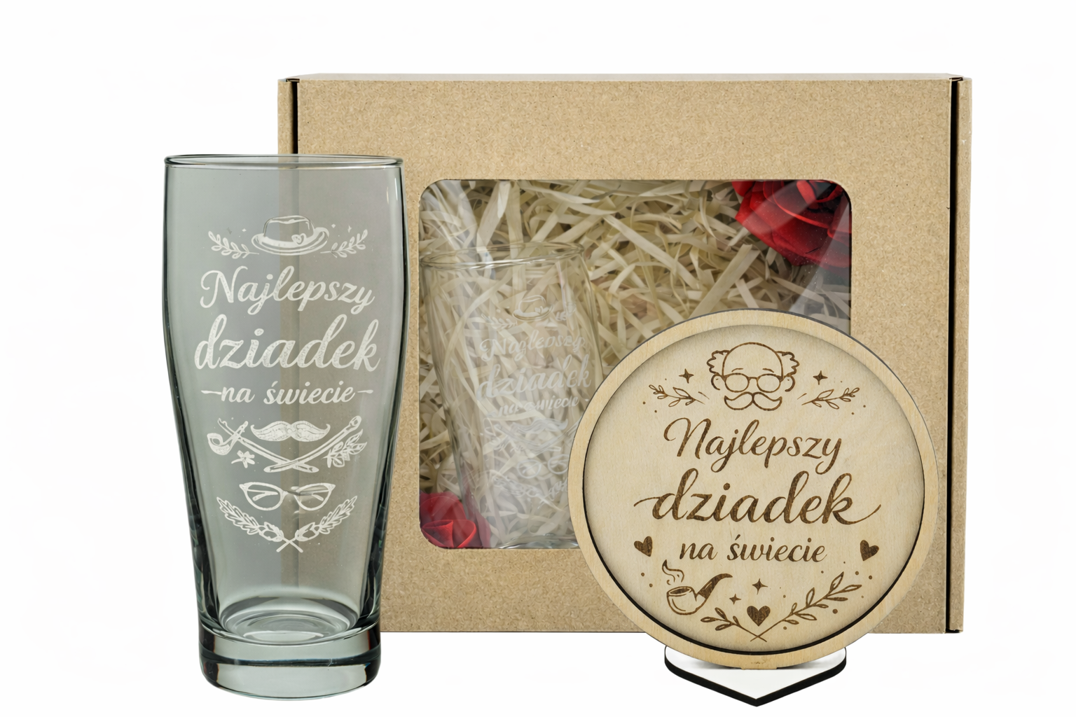 Elegancki zestaw prezentowy na Dzień Dziadka ze szklanką z grawerem „Najlepszy Dziadek”. Osobisty, praktyczny i gotowy do wręczenia – idealny prezent od serca.