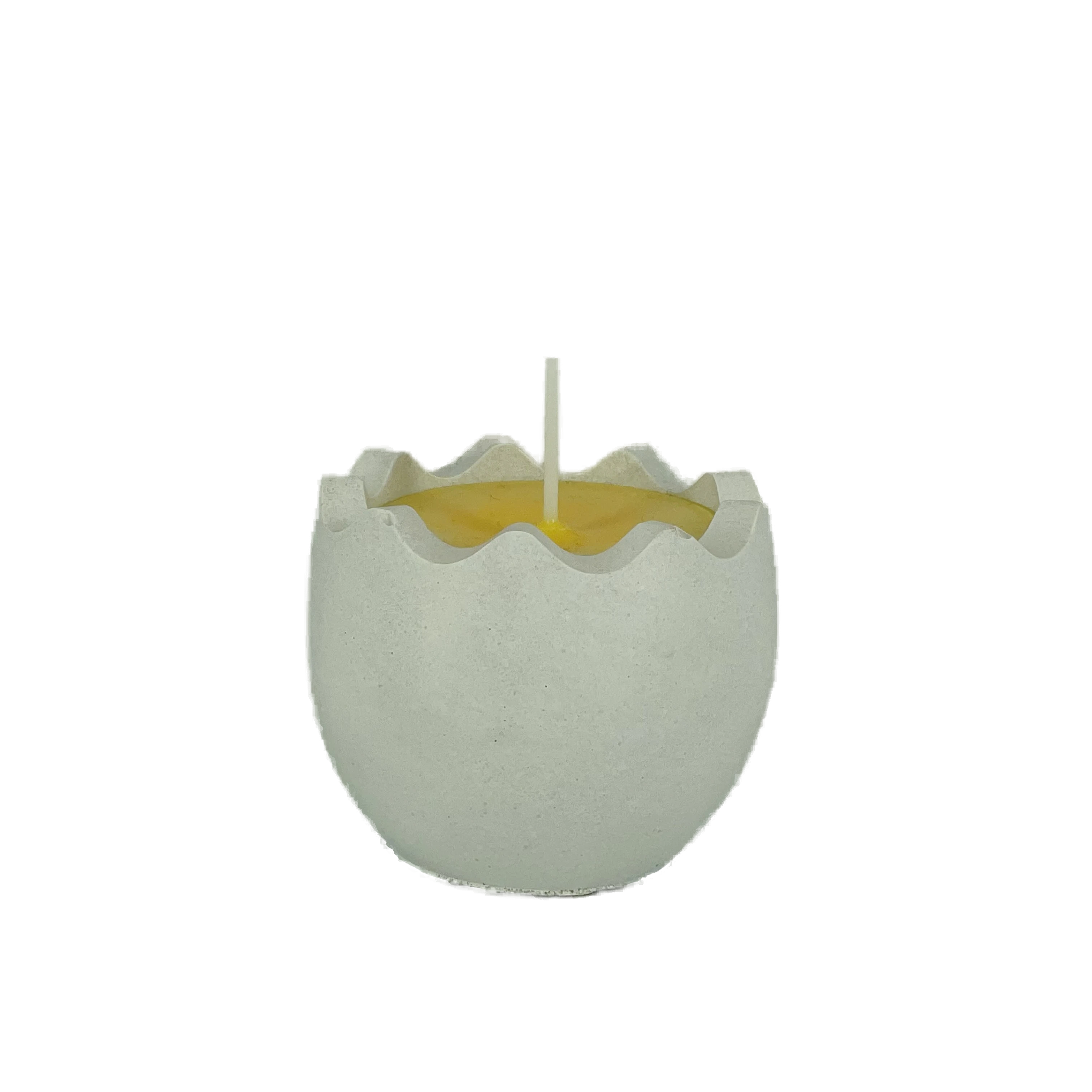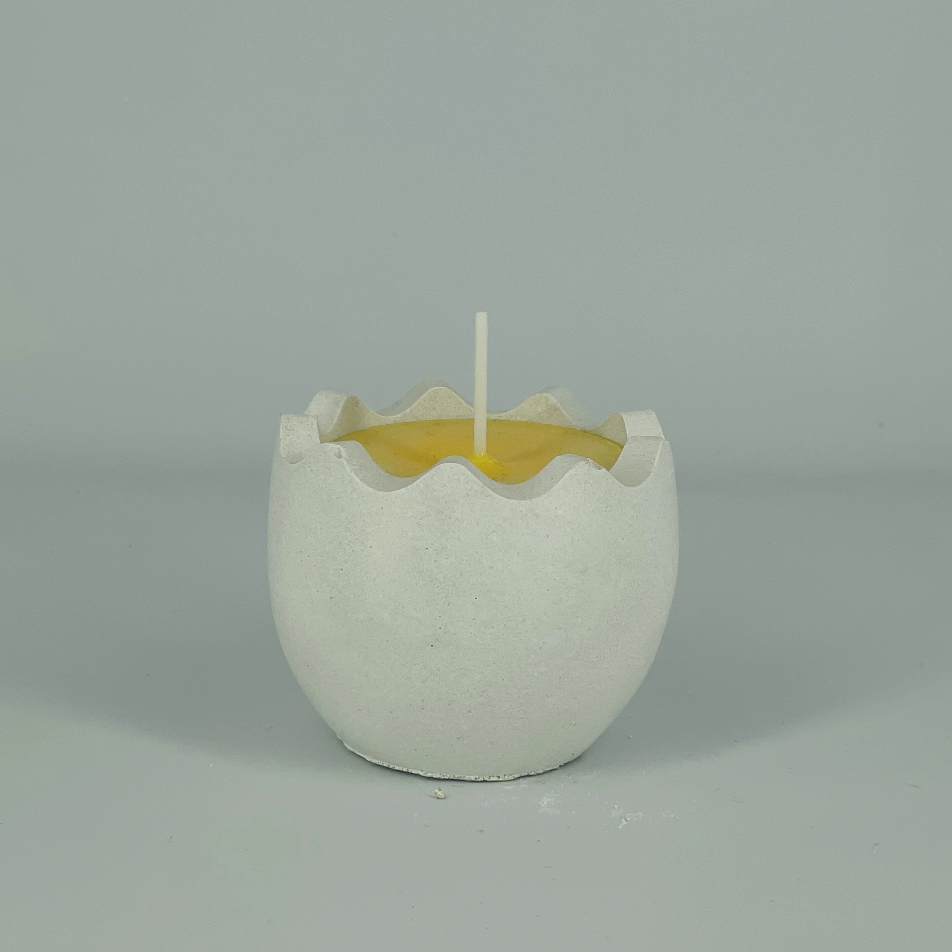 Świeca sojowa w kształcie rozbitego jajka w formie z betonu