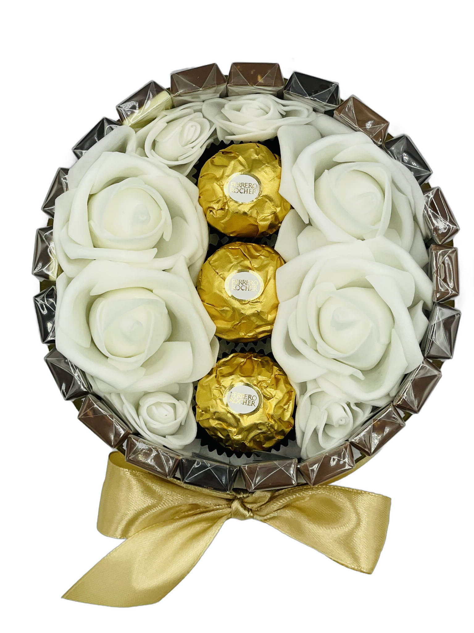 Tort ze słodyczy Merci Ferrero Rocher koło prezent na urodziny rocznice 15 cm