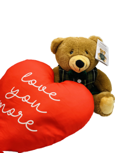 Wyjątkowy Zestaw Prezentowy: Zielony Miś Elegant i Poduszka Serce „Love You More”