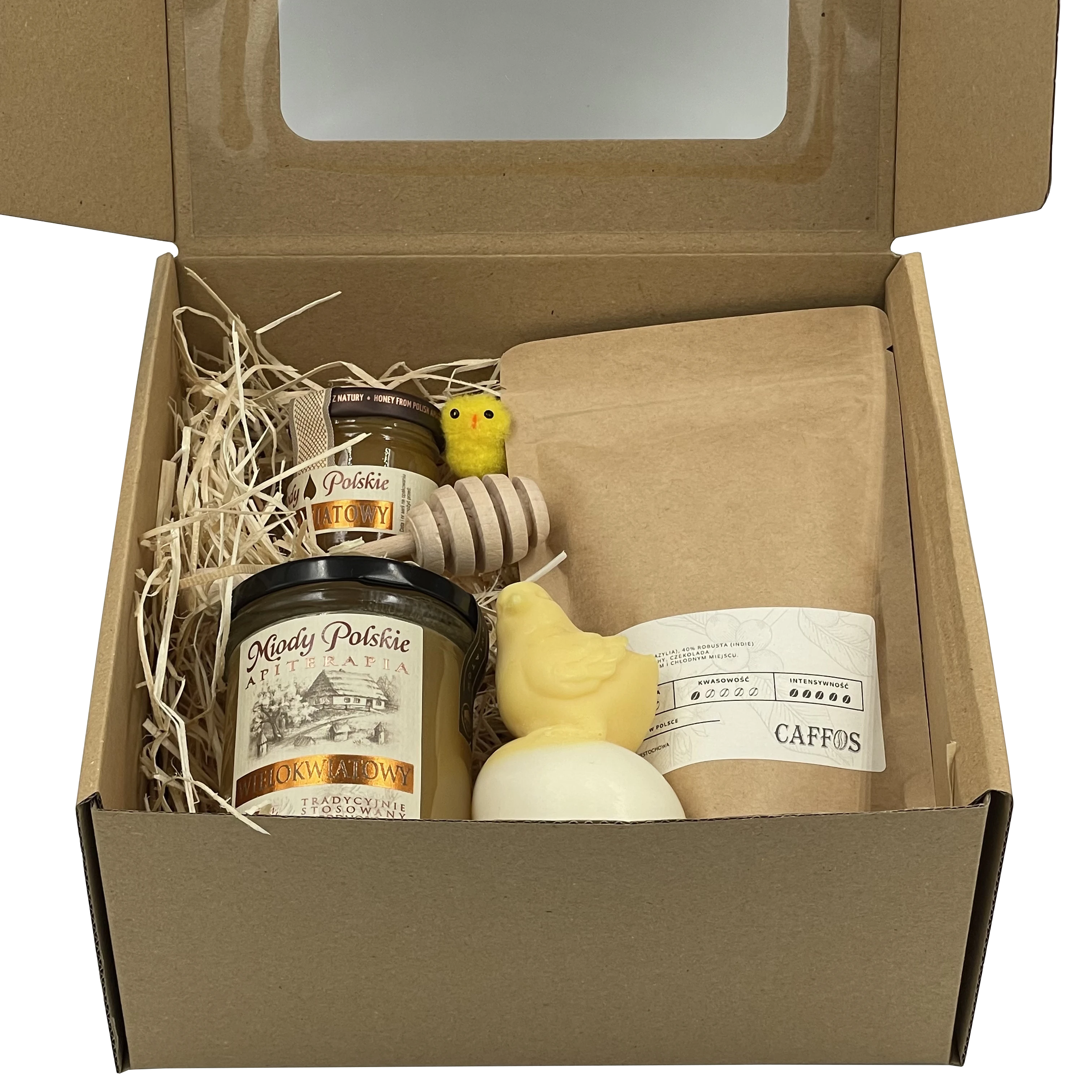 Zestaw Prezentowy na Wielkanoc – Box Upominkowy z Kawą i Naturalnym Miodem